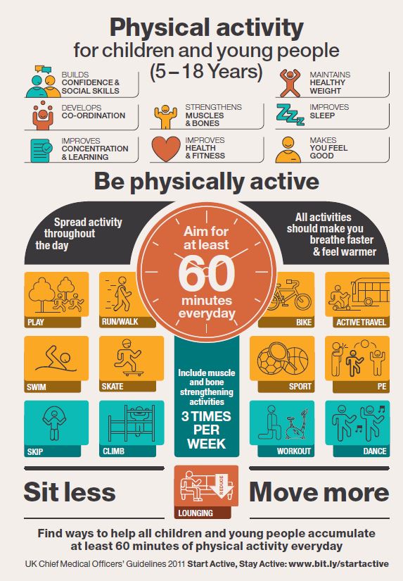 Click on the NHS Choices icon above to download a Factsheet on Physical activity guidelines for children and young people.