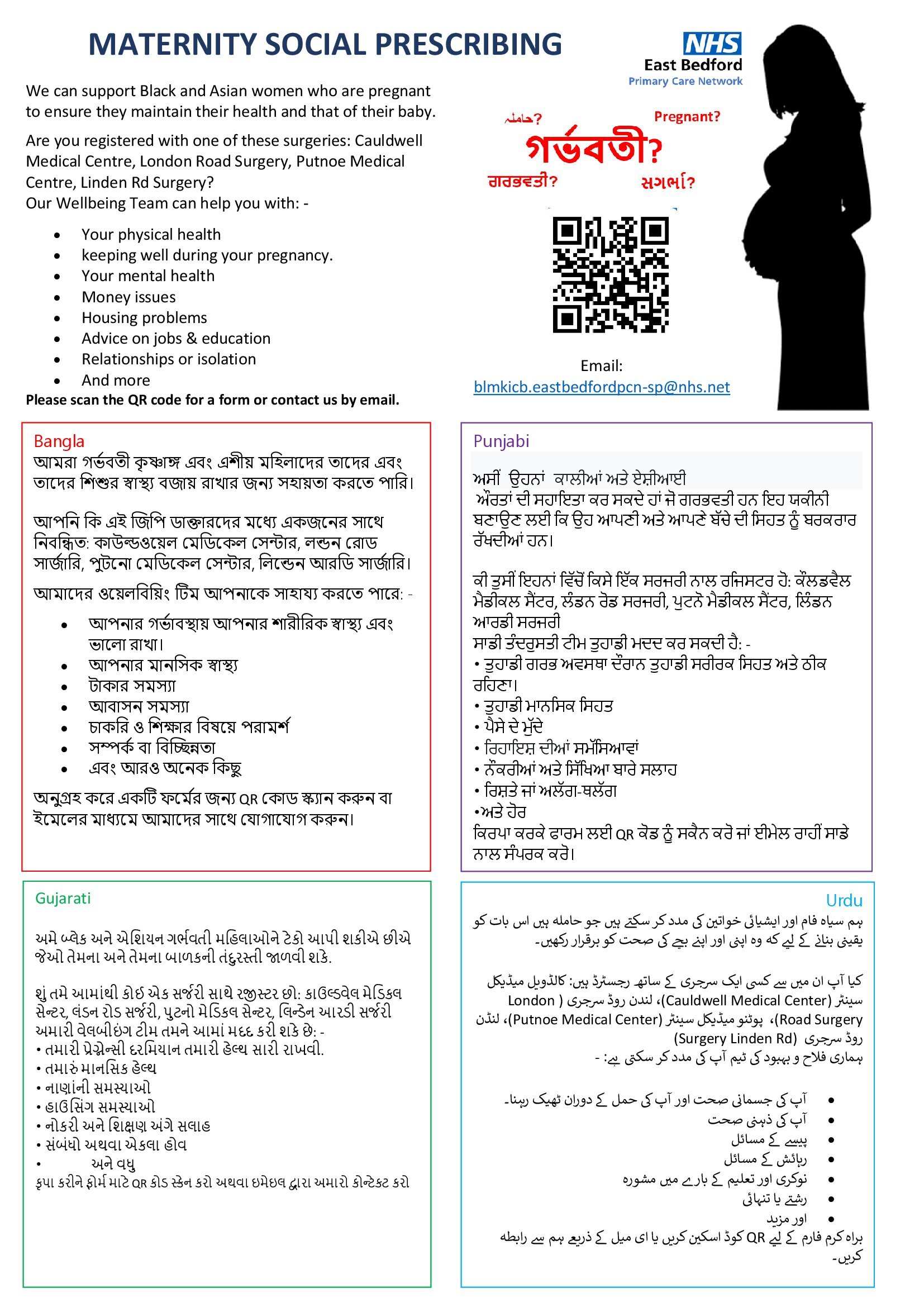 East Bedford Primary Care Network offer support to Black and Asian women who are pregnant or planning a pregnancy to maintain their health and that of their baby.